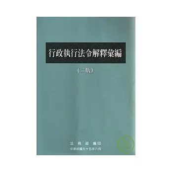 法務部之前出版「行政執行法令解釋彙編」一書,備受各界好評,均認對於行政執行相關法令之釋疑,甚具參考價值,法務部爰再版該書,並增錄近2年來多則最新解釋,俾利法律學實務界之參考。